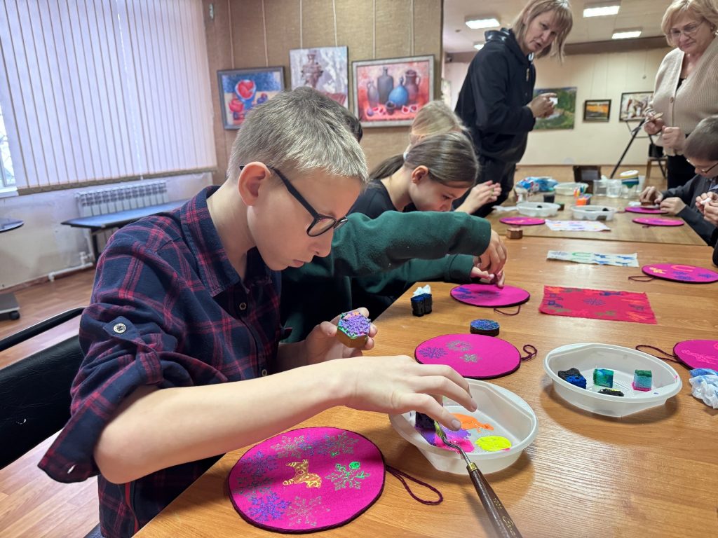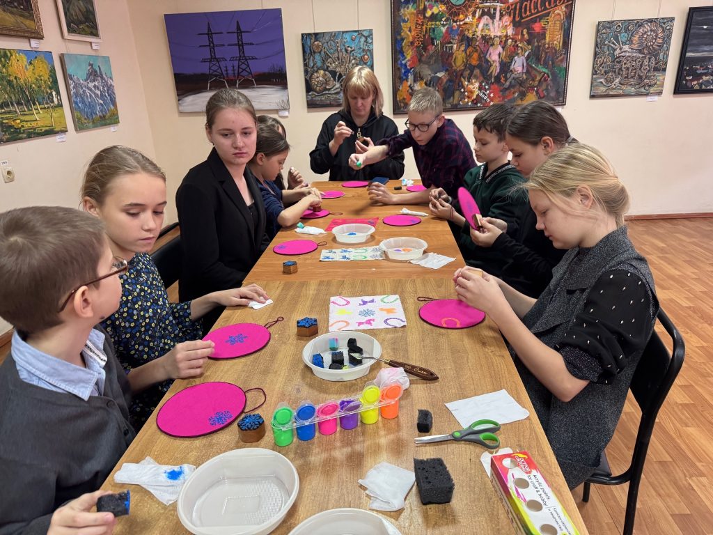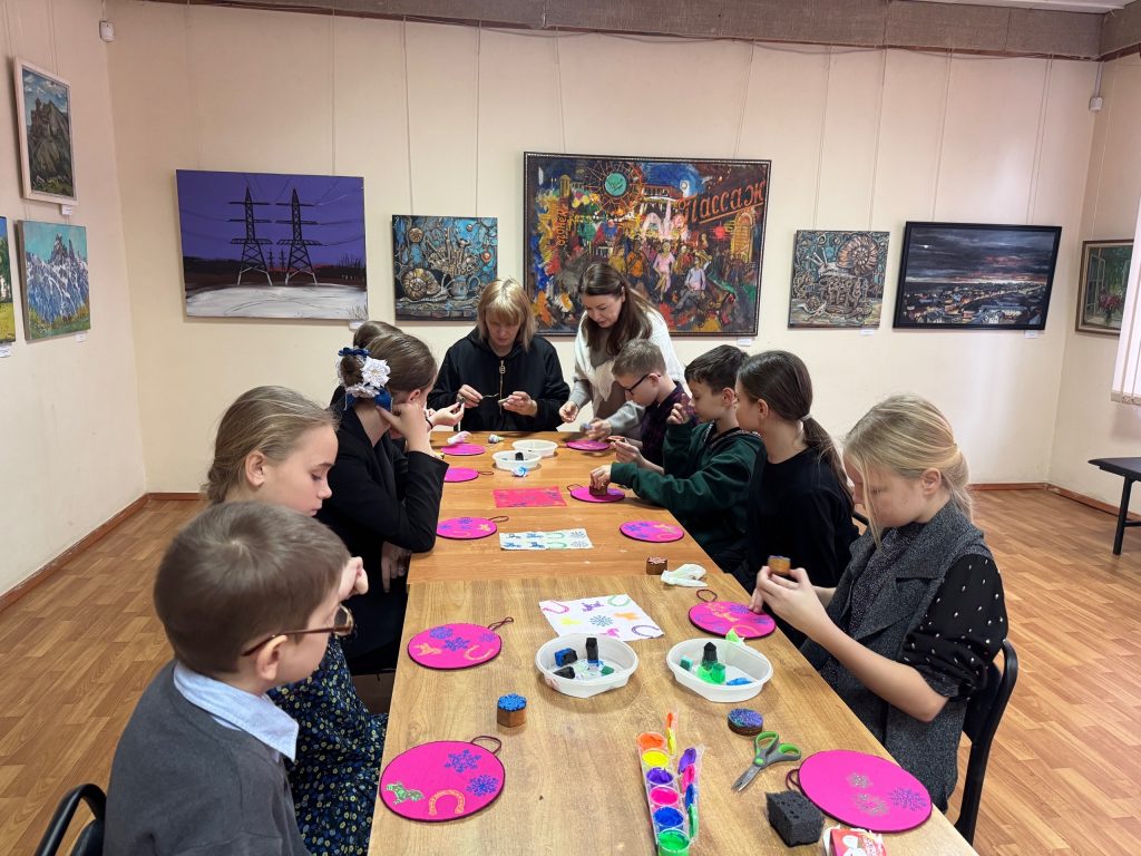 Новогодние мероприятия в музее продолжаются!!! В рамках работы творческой лаборатории «Шелкопряд» , для воспитанников детских садов города, прошел мастер-класс «Снежная история» по росписи ткани в технике холодного батика.