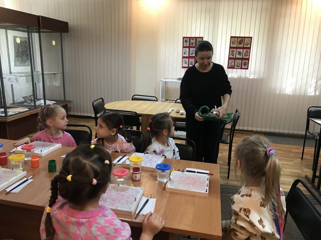 🀄 В рамках работы творческой лаборатории «Шелкопряд» 🐛 Невинномысский музей провел мастер-класс 🌺 «Осенние цветы» 🌺 по росписи ткани в технике холодного батика. Участниками мастер-класса стали воспитанники детского сада «Гармония».