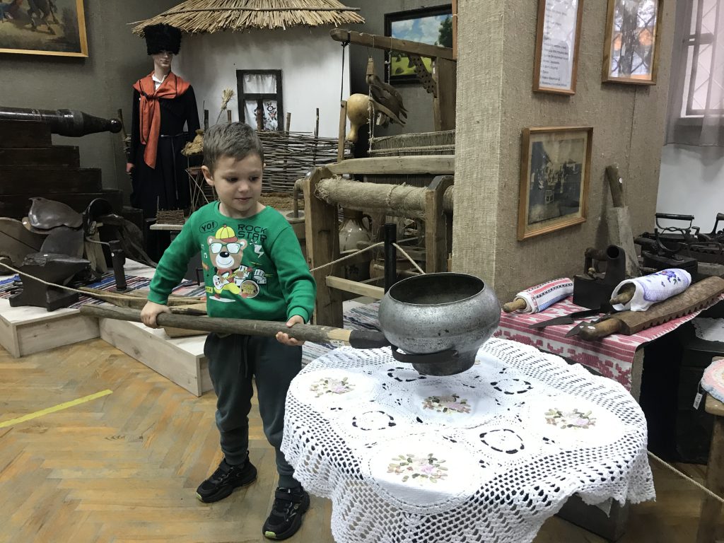 Отдельно обсудили особенности воспитания казачат: строгость, дисциплину, почитание старших и крепкие семейные узы. В игровой форме ребята познакомились с домашними работами казачки, став ее главными помощниками, помолов зерна🌾 и наносив воду коромыслом💦 . Особый интерес у детей вызвали старинные предметы, такие как чугунок, ухват, старинный утюг, коромысло, прялка.