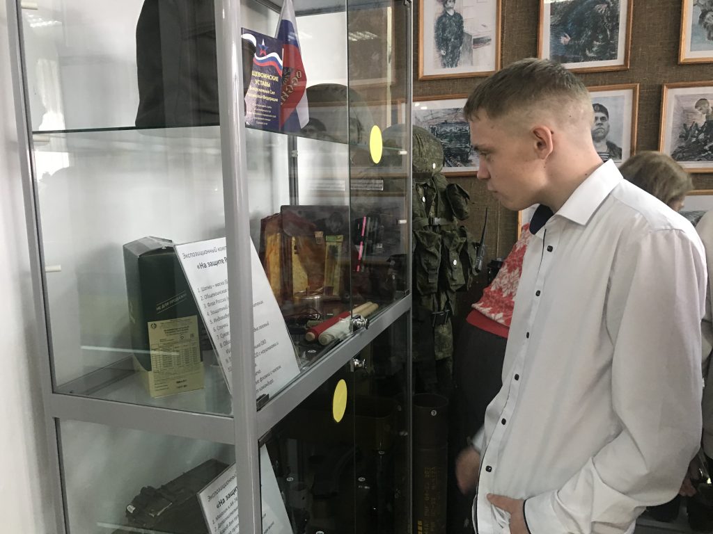 В основе экспозиции — подлинные предметы и личные вещи участника СВО на Запорожском направлении (2022–2024), старшины отдельной штурмовой группы 70-го гвардейского мотострелкового полка, штурмовой группы 3-го стрелкового батальона стрелковой роты — Ткачёва Сергея Евгеньевича. Рядом — вещи, привезённые волонтёрами, доставляющими гуманитарную помощь в места проведения СВО: простые, будничные предметы, в которых особенно остро чувствуется человеческое тепло, забота и надежда. Здесь музейный зал становится не просто пространством памяти, а точкой соприкосновения с реальностью — строгой, непростой, требующей вдумчивого взгляда.