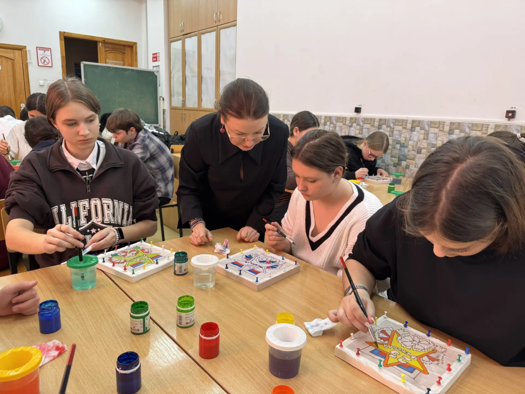 В классах царила тёплая, почти семейная атмосфера: ребята делились идеями, советовали друг другу удачные сочетания, радовались первым удавшимся штрихам и поддерживали тех, у кого что-то получалось не сразу. Творческий процесс увлёк всех — время пролетело незаметно, а на столах постепенно появлялись яркие работы, каждая со своим характером и настроением .