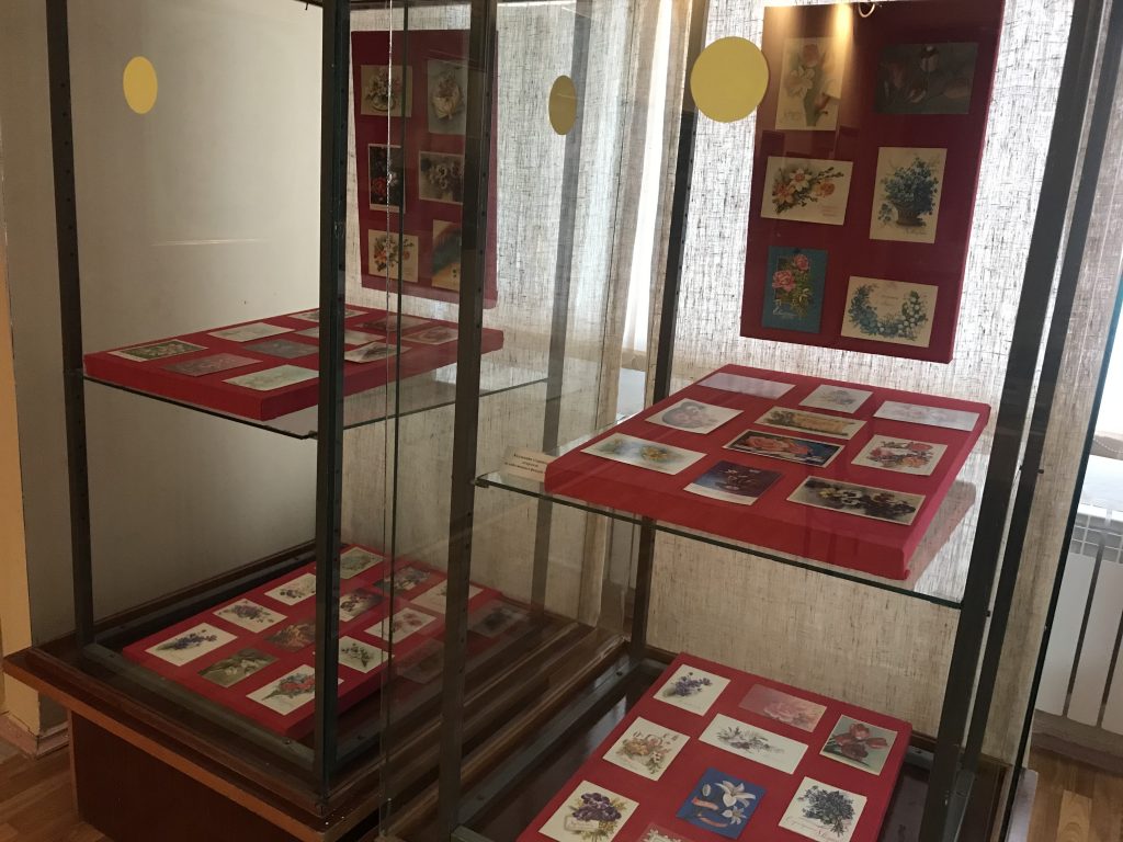 Вторая выставка из собственных фондов музея «Маленькие радости советских женщин». Вашему вниманию представлена коллекция старинных открыток, посвященных 8 марта , которая насчитывает более ста предметов, а так же посуда советского периода, фарфоровые статуэтки, вышивки и различные женские аксессуары: шкатулки, украшения, пудреницы, зеркальца и многое другое.