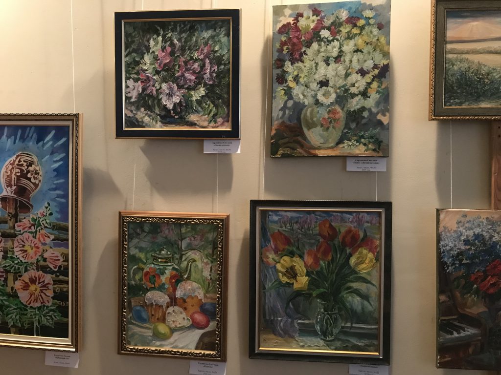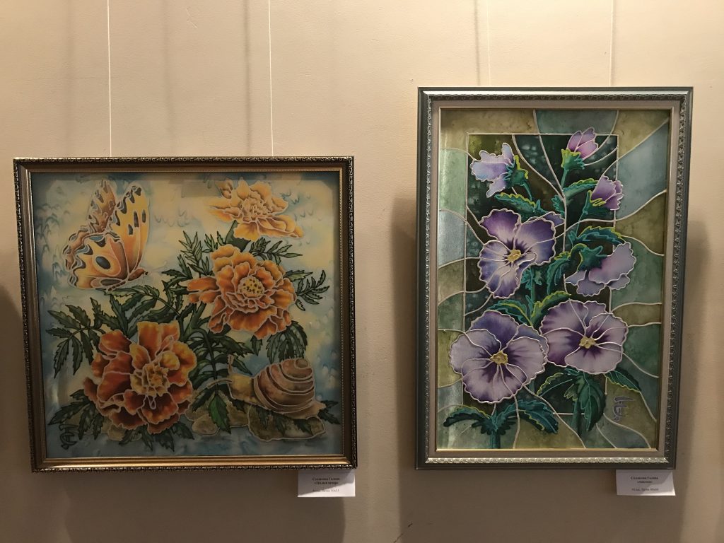 Одна из них — «Крылья весны», где представлены работы невинномысских художниц, членов Творческого союза художников России: Григоренко Натальи, Сердюковой Светланы и Солдатовой Галины. Здесь вы сможете окунуться в мир цветов, изображенных на полотнах картин и познакомиться с одним из видов декоративно-прикладного искусства — батиком.