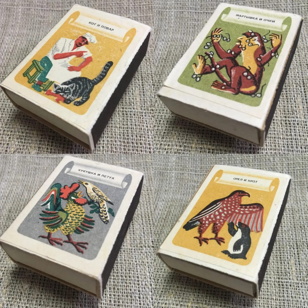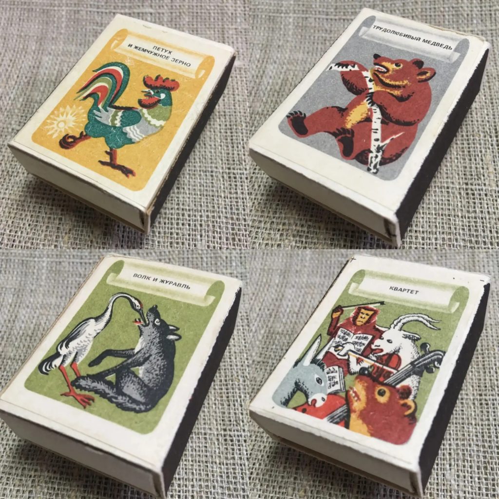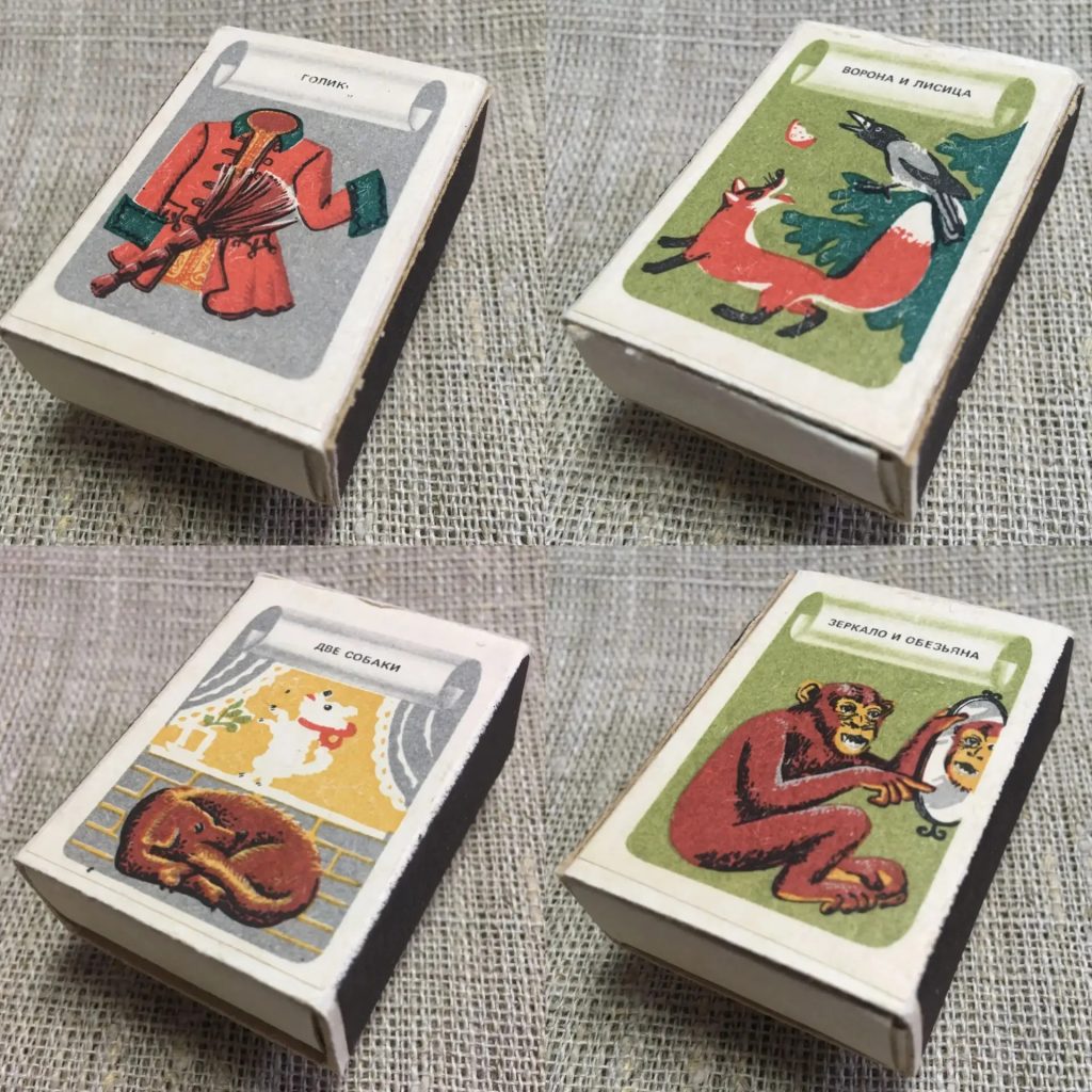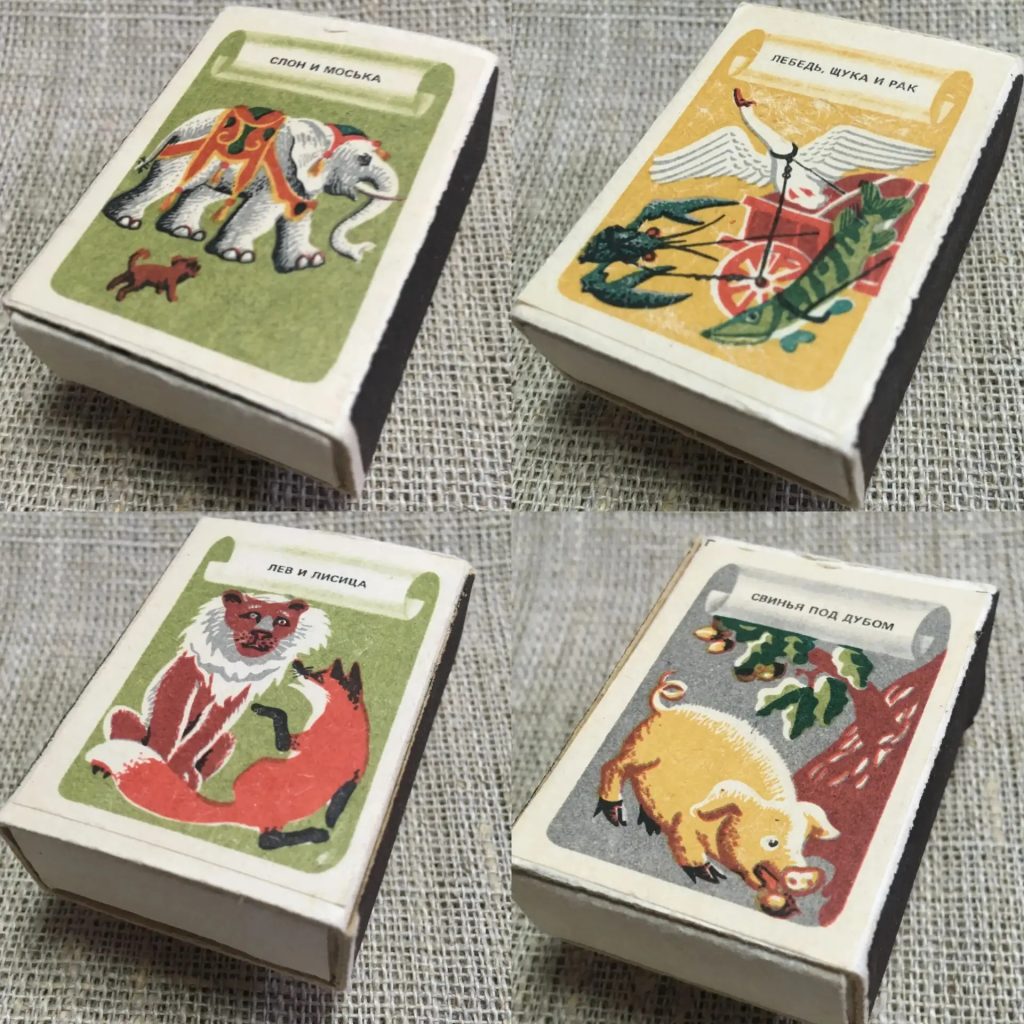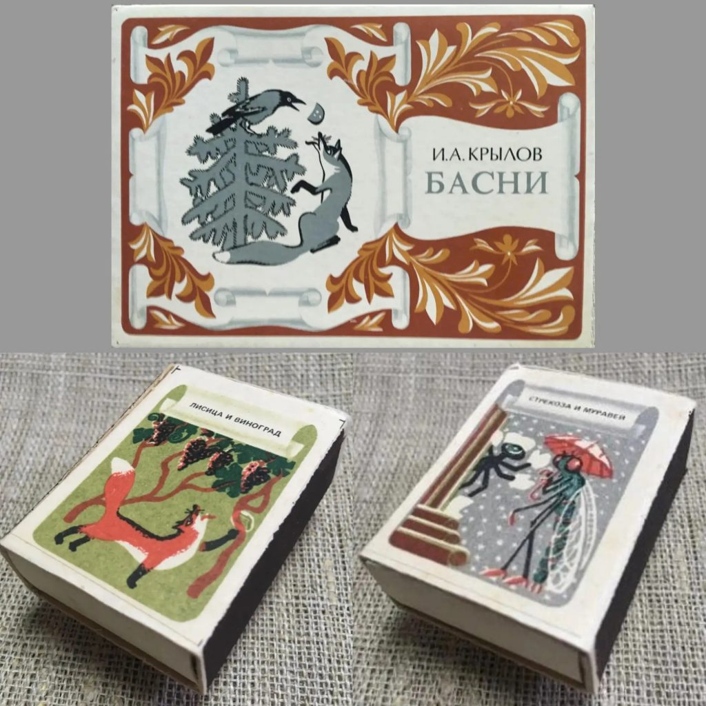 В фондах нашего музея хранится сувенирный набор спичек «А.И. Крылов. Басни», изготовленный в 1988 году на фабрике «Пролетарское знамя» в городе Чудово. Каждый коробок в наборе, а их насчитывается 18 штук, оформлен иллюстрацией и названием одной из басен А.И. Крылова. Это не просто утилитарный предмет, а миниатюрная художественная серия, которая популяризует литературное наследие Крылова.